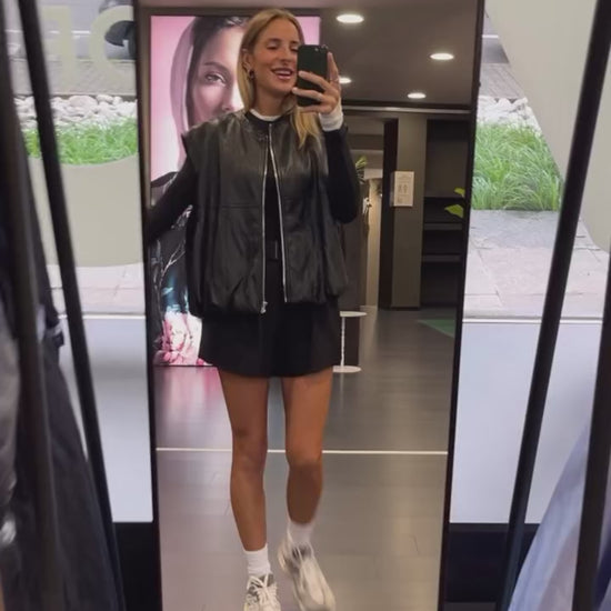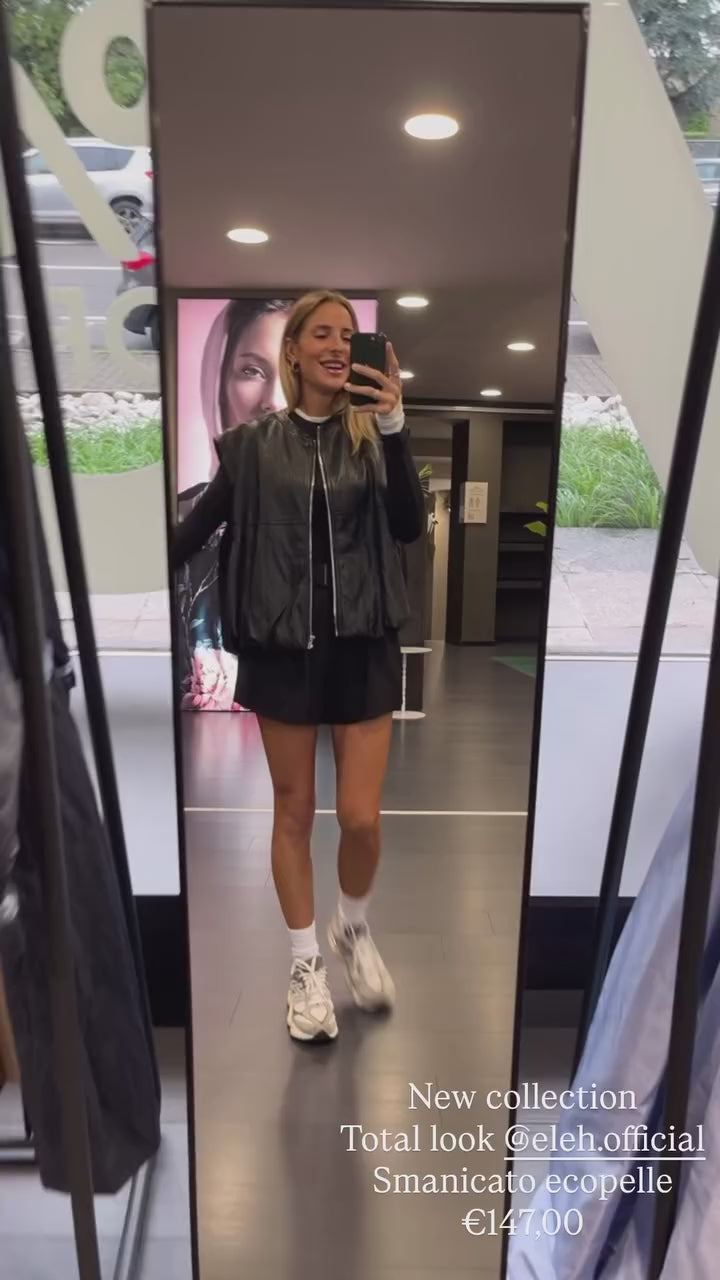 Bomber smanicato in ecopelle con zip frontale.