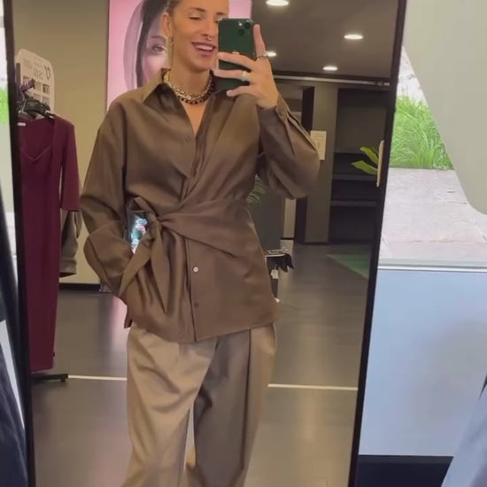 Camicia over con la possibilità di segnare il punto vita con un fiocco.