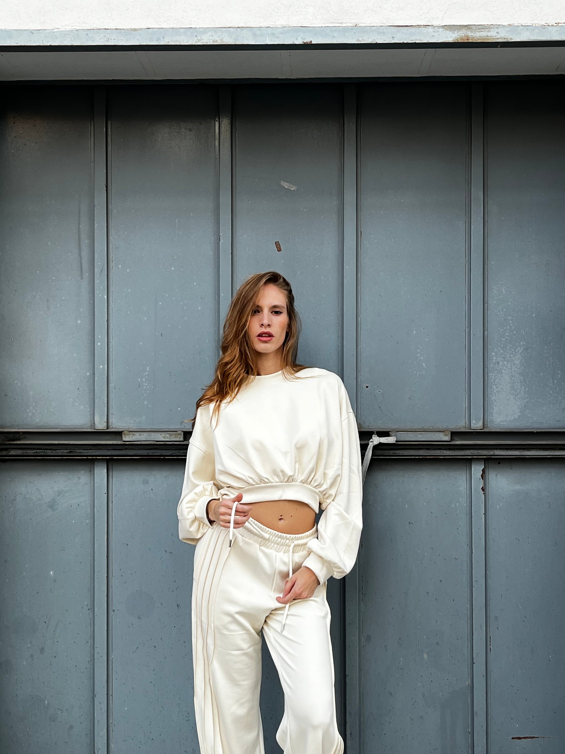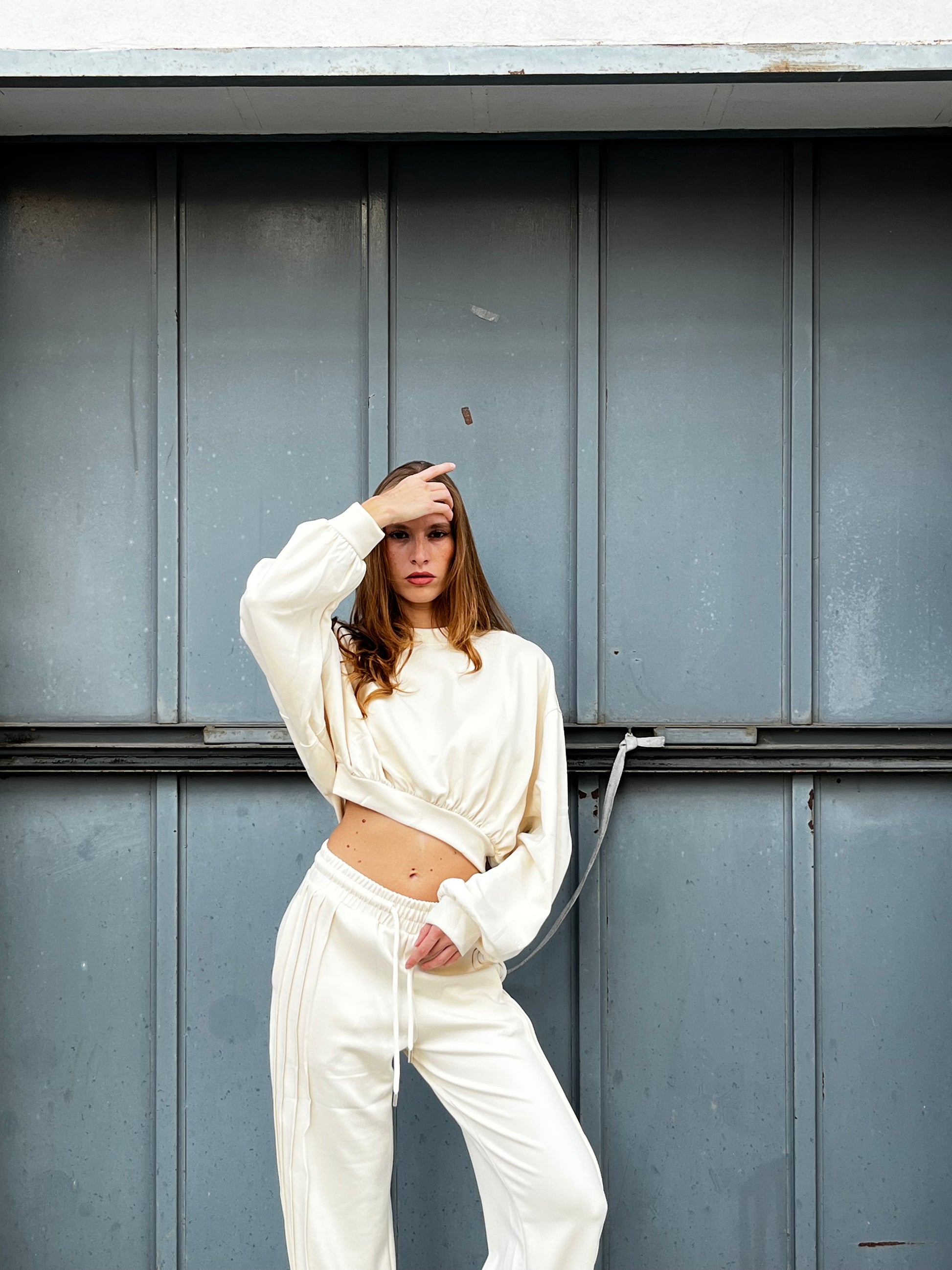 Felpa Crop in viscosa morbidissima.la modella indossa una XS.