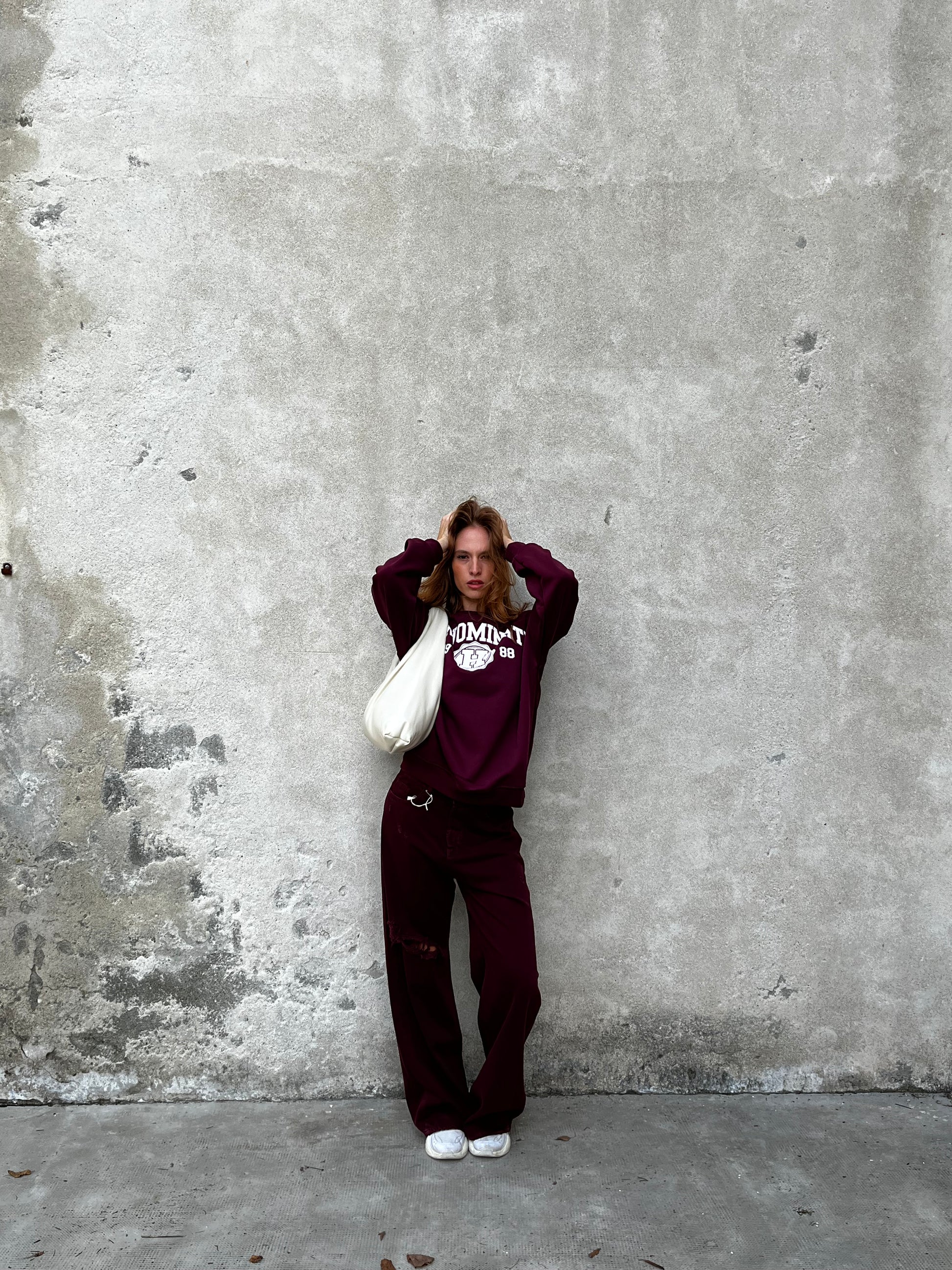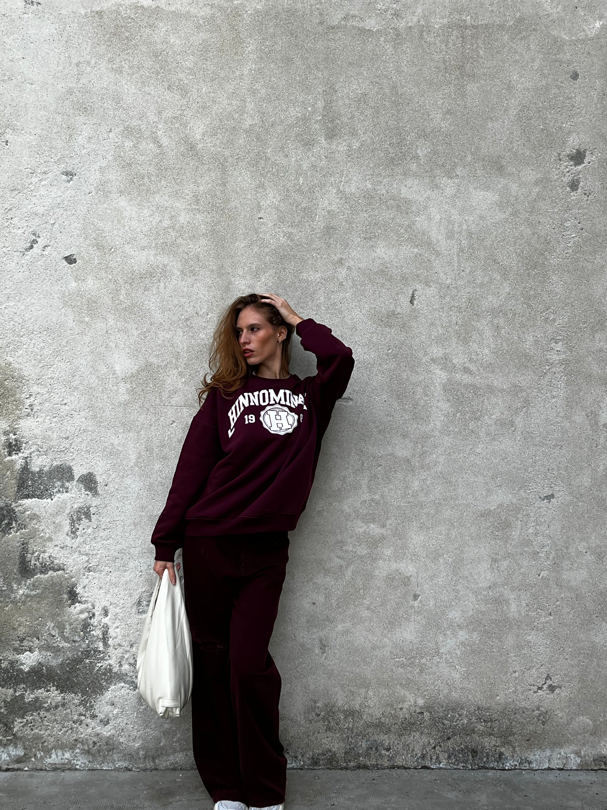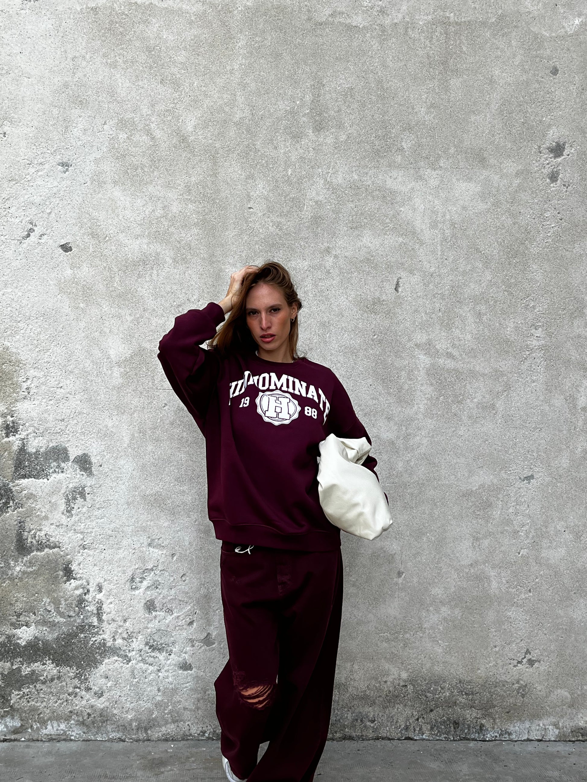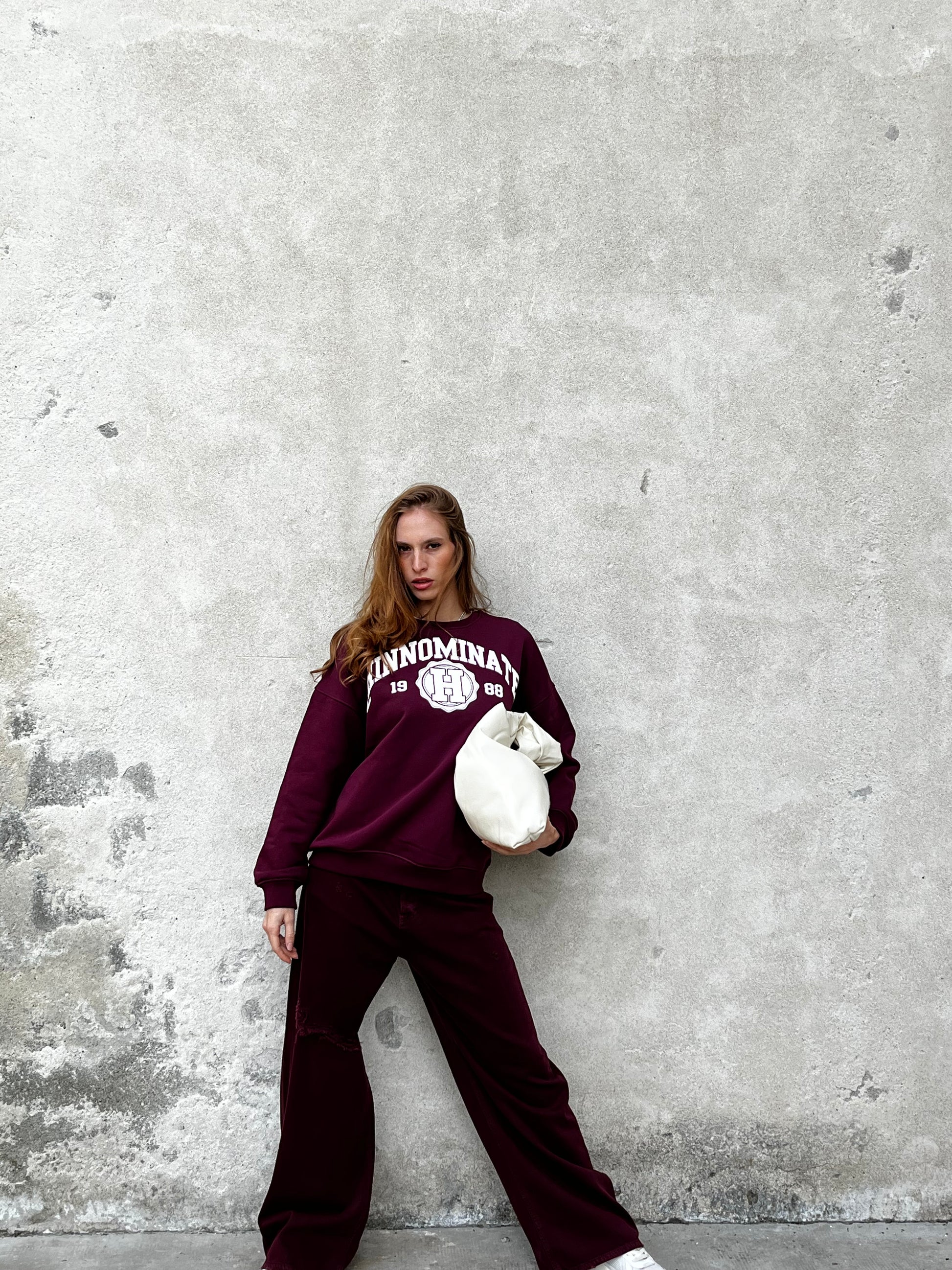 Felpa paricollo over collage con scritta Hinnominate in rilievo. Felpata. La modella indossa una XS.