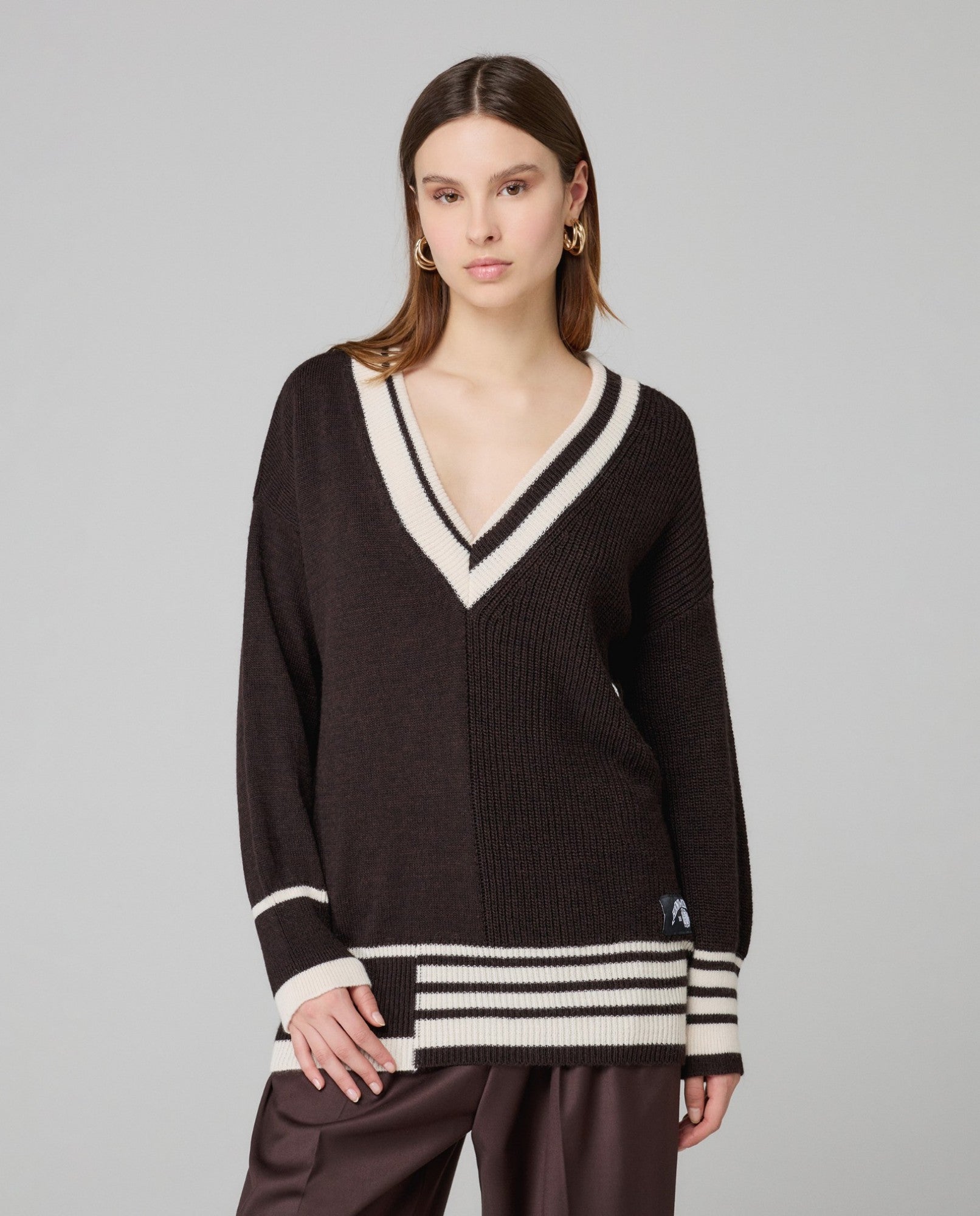 Maxi Maglia College Scollo A V In Maglieria morbidissima